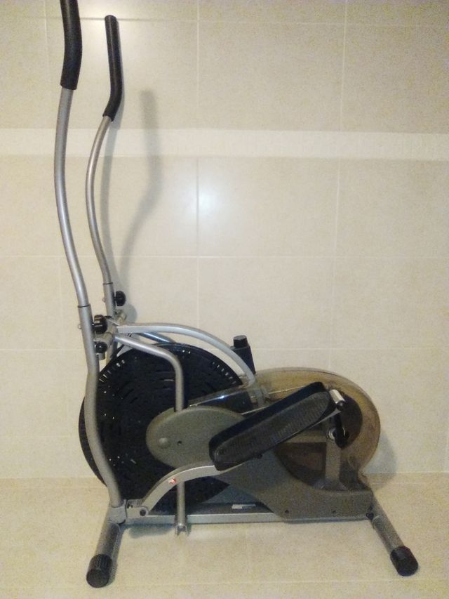 Máquina elíptica para ejercicio cardiovascular. - Estructura metálica. - Pedales antideslizantes. - Manillar con agarres acolchados.