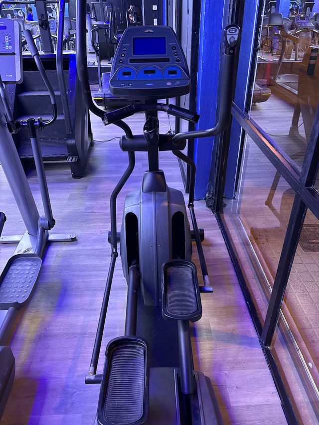 Elíptica de gimnasio. - Diseño robusto y duradero. - Pedales amplios y antideslizantes. - Pantalla digital con información de entrenamiento.