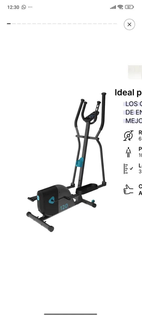 Detalles del productoElíptica Domyos modelo 120 en color negro y azul. Ideal para entrenamientos en casa.