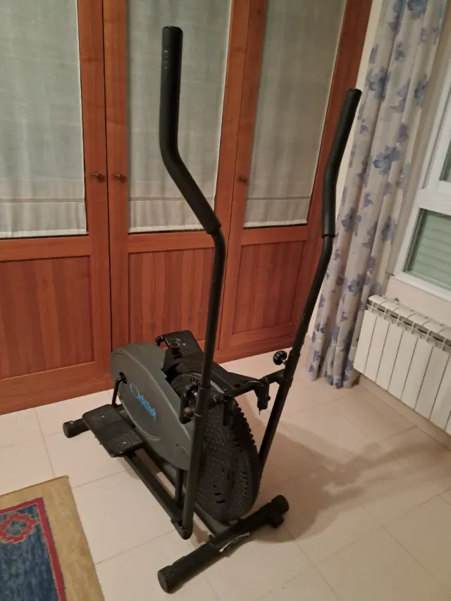 Elíptica estática para entrenamiento en casa. - Diseño compacto y funcional. - Pedales antideslizantes. - Manillar ergonómico.