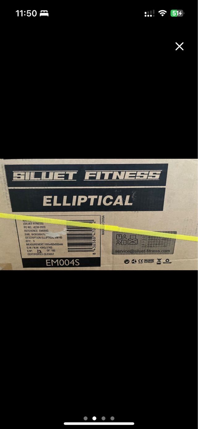 Detalles del productoElíptica de la marca Silhouette, modelo EM004S. El precio original es de 375€ pero nunca llegamos a montarla ni abrirla