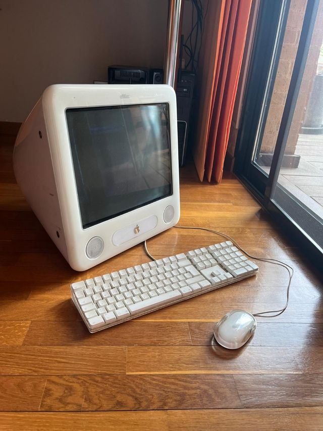 ordenador Apple eMac G4 en perfecto estado de aspecto y funcionamiento. incluye cable de conexión teclado y mousse Apple originales. la pantalla es de 17".