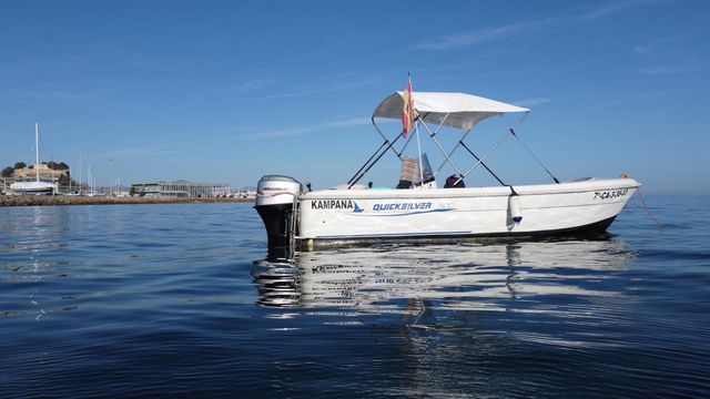 Se vende embarcacion Quicksilver modelo FISH de 5m de eslora y 2m de manga. Con motor mariner de 50cv, se le ha hecho su revision pertinente y funciona correctamente. Tiene sonda garmin. se vende por no usar.