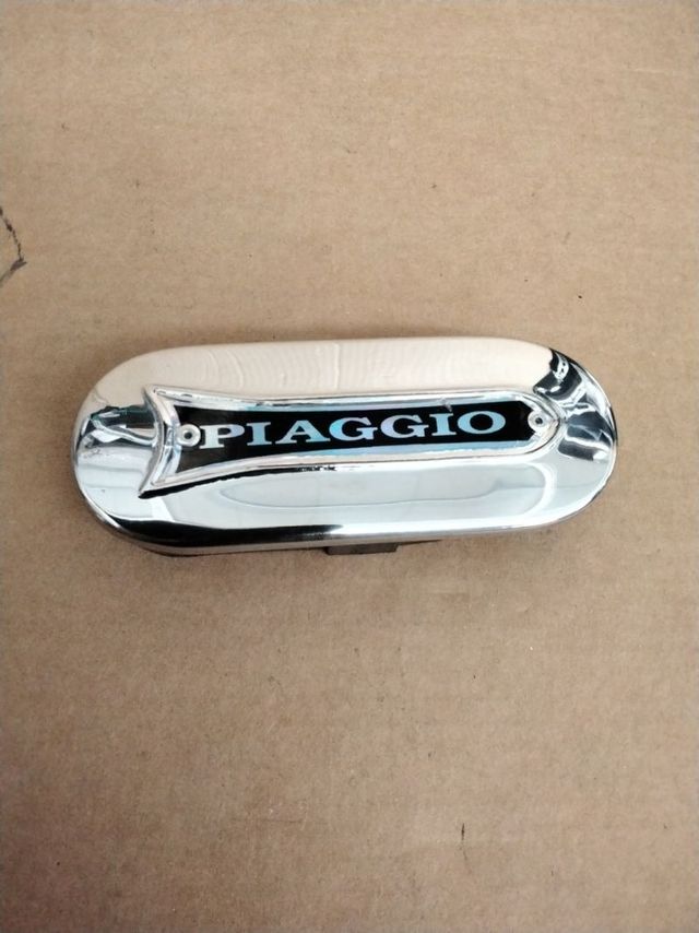 El soporte interior es de plastico negro y el exterior es de acero pulido con adhesivo "PIAGGIO".