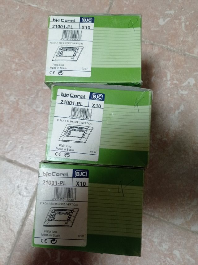 Embellecedores bjc coral nuevos,tapas con bastidor, carátula enchufes ,el color es gris plata son 30 unidades de cada