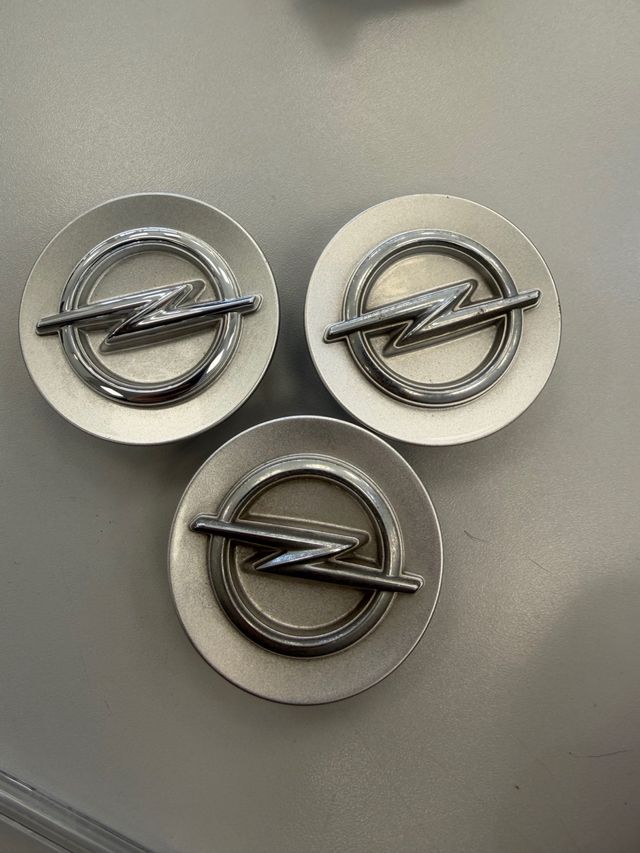 Detalles del productoSet de tres embellecedores para buje de rueda de Opel Corsa F. Diseño plateado con el icónico logo de Opel.