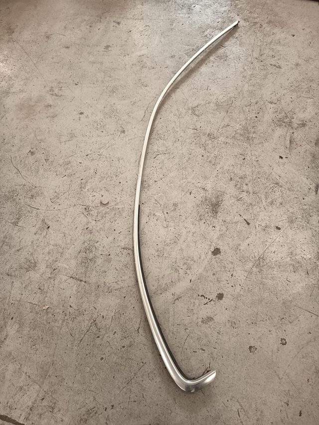 Embellecedores de ventana para BMW E46 318Ci. - Pieza de metal plateado. - Diseño curvo y estilizado.