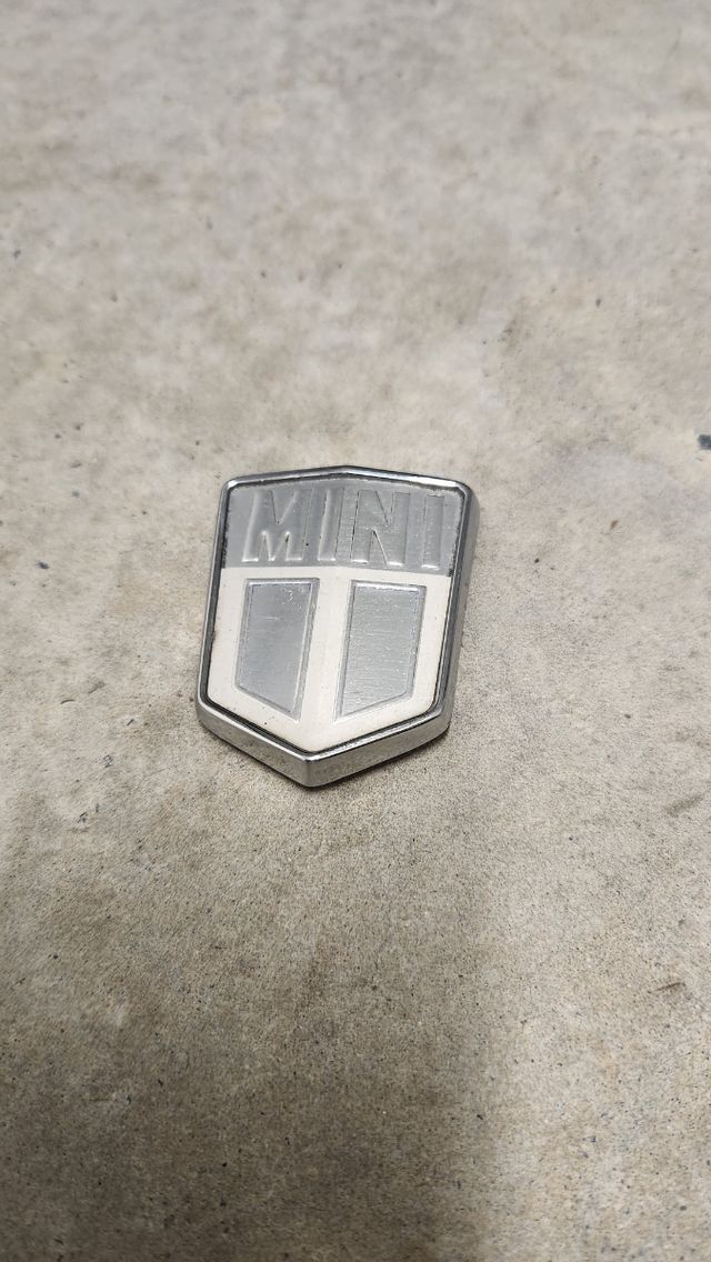Emblema antiguo para Mini. Faltan las sujeciones pero se puede instalar con adhesivo fácilmente.