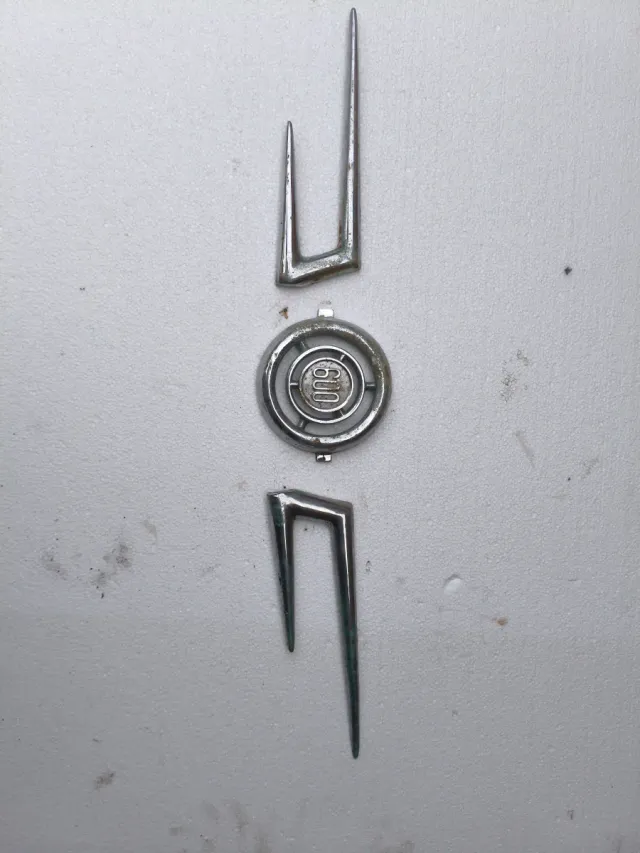 Piezas de emblema y bigoteras para Seat 600. - Emblema central con numeración 600. - Dos piezas laterales con diseño alargado y puntiagudo.