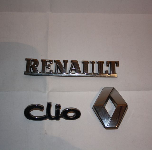 Detalles del productoSe venden emblema delantero Renault y logotipos traseros “RENAULT” y “CLIO” pertenecientes a un Renault Clio I fase 3. Como se puede ver en las fotos, conservan todos los pines de fijación. NO SE VENDEN POR SEPARADO. Entrega en mano en Irun y Donostia (Solo Gros) Más despieces de Renault Clio en mi perfil.