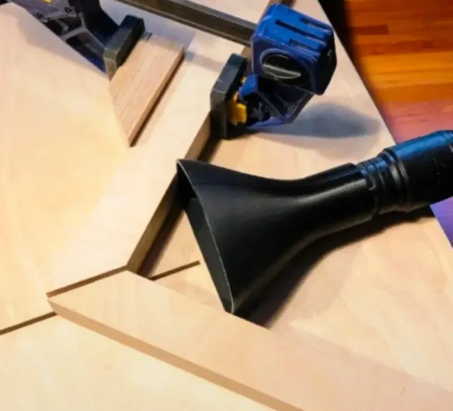 Detalles del productoEmbudo colector de polvo Festool para manguera, ideal para trineos u otras aplicaciones. Necesitaba un embudo para aspirar el polvo que proyectaba la hoja de sierra en mi plantilla de inglete para marcos de fotos. Esta solución rápida se conecta a mi extractor de polvo Festool y se fija a la plantilla con cinta adhesiva de doble cara. Está diseñado para aprovechar el cierre giratorio de la manguera y sella muy bien.