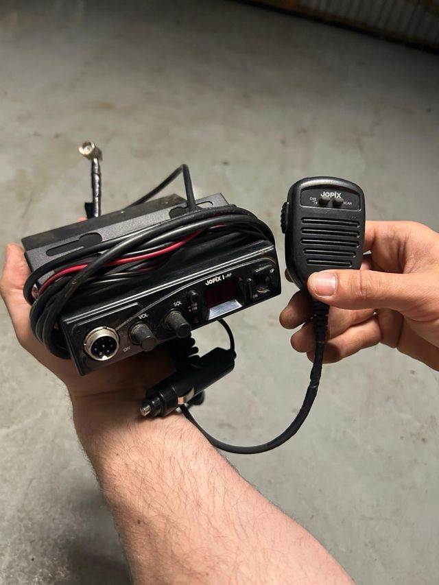 Emisora CB JOPix I-AF con micrófono y antena. Para todoterreno tractor campo monte etc - Incluye soporte. - Cable de alimentación para mechero de coche.