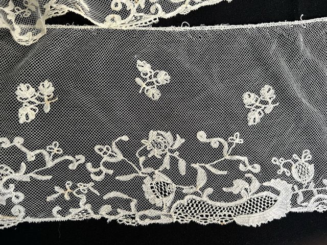 Detalles del productoMagnífico encaje antiguo de Bruselas, la pieza se encuentra en buen estado quitando algún agujero y otros defectos (en fotografías), constando esta de 2,10 metros de largo x 15 cm de anchura.