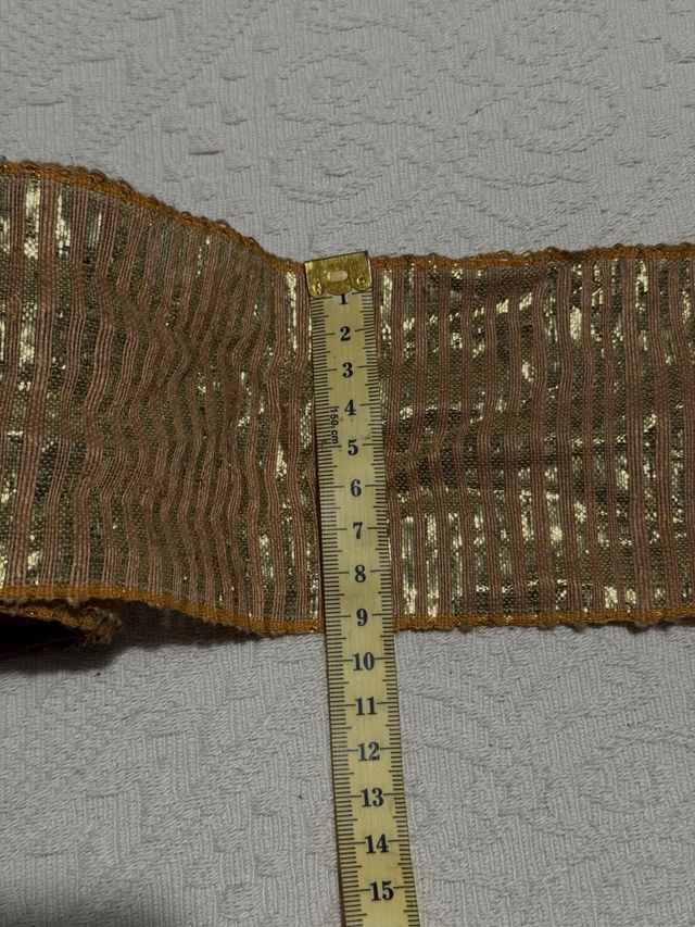 Precioso encaje lamé de oro. Medidas: 1,20x9