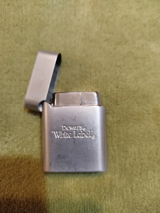 Encendedor metálico con la marca Dewar's White Label. - Diseño clásico. - Acabado plateado.