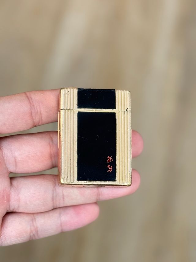 Detalles del productoEncendedor S.T. Dupont original, modelo Ligne 1 (pequeño), chapado en oro 20µ y laca china negra con ideogramas rojos. Pieza vintage de los años 60/70.´