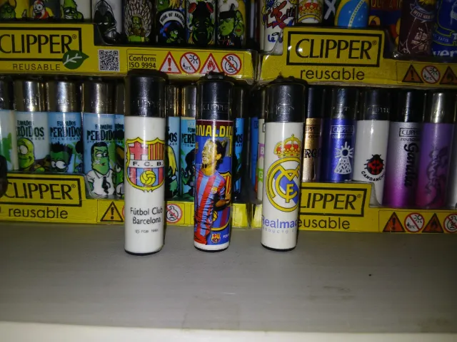 Detalles del productoLote de encendedores Clipper con diseño del FC Barcelona y Real Madrid