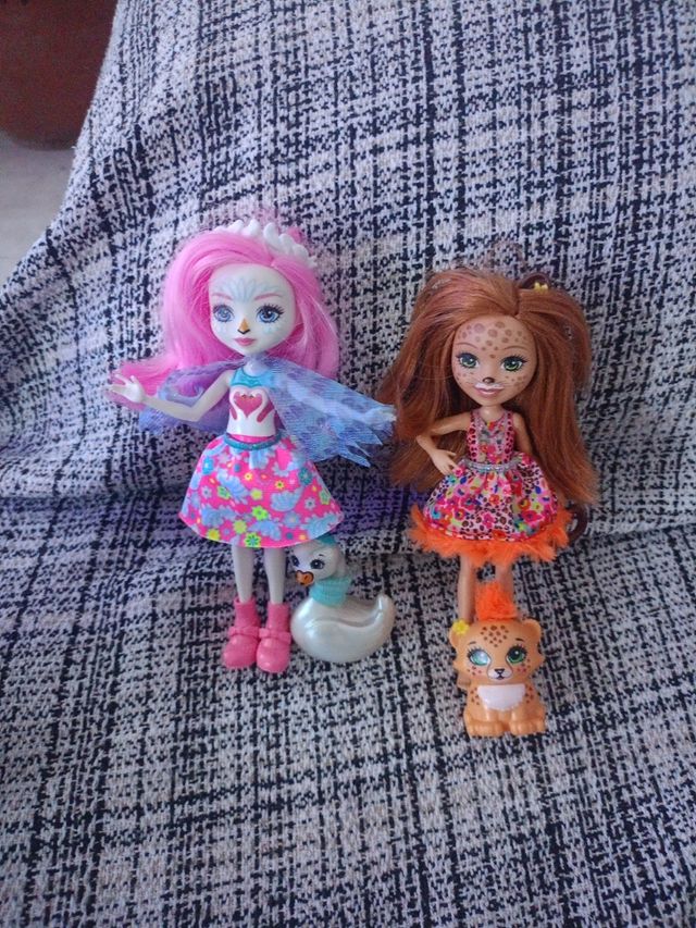 Detalles del productoSet de dos muñecas Enchantimals, una con temática de cisne y otra de leopardo. Incluye sus mascotas.