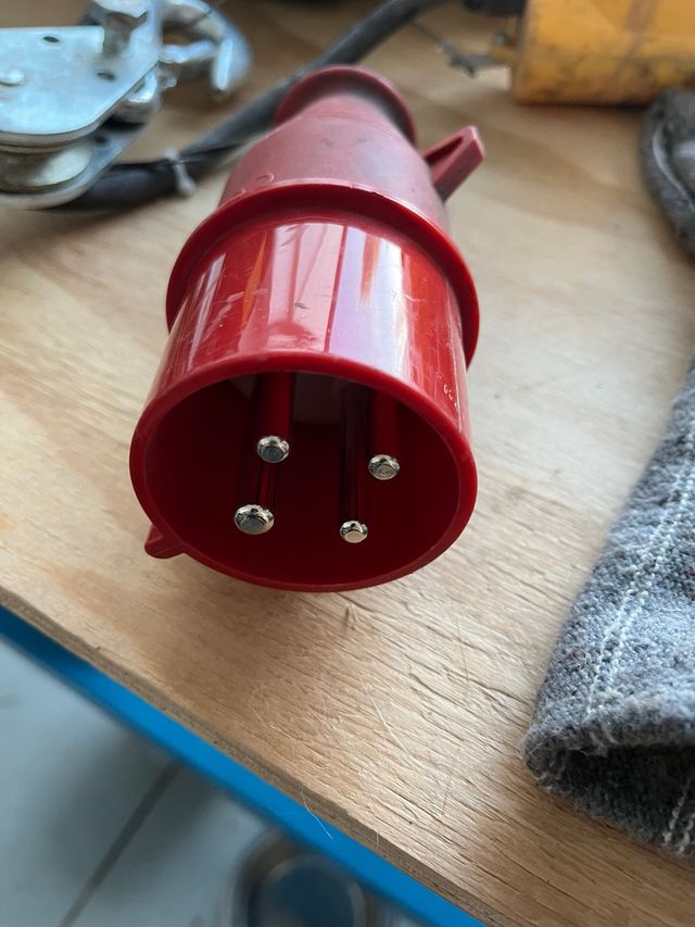 Detalles del productoEnchufe industrial de color rojo, diseñado para conexiones de 220V y 380V. Ideal para entornos de trabajo exigentes.