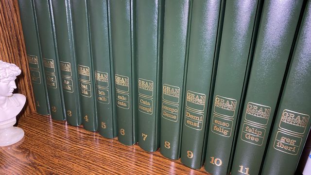 Enciclopedia catalana con 28 tomos con tapas de cuero por estrenar.