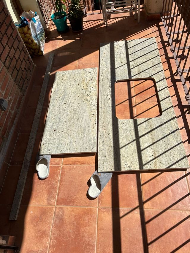 Se venden dos piezas de encimera de granito + copete. No se han usado, sobraron de una obra que hicimos en nuestra cocina.