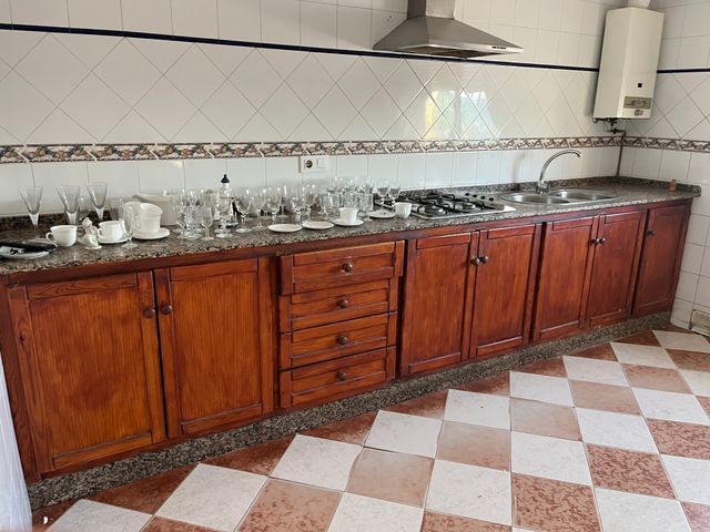 Encimera de cocina de mármol con fregadero incluido. - Longitud total: 3.95 metros. - Material: Mármol. - Incluye fregadero.