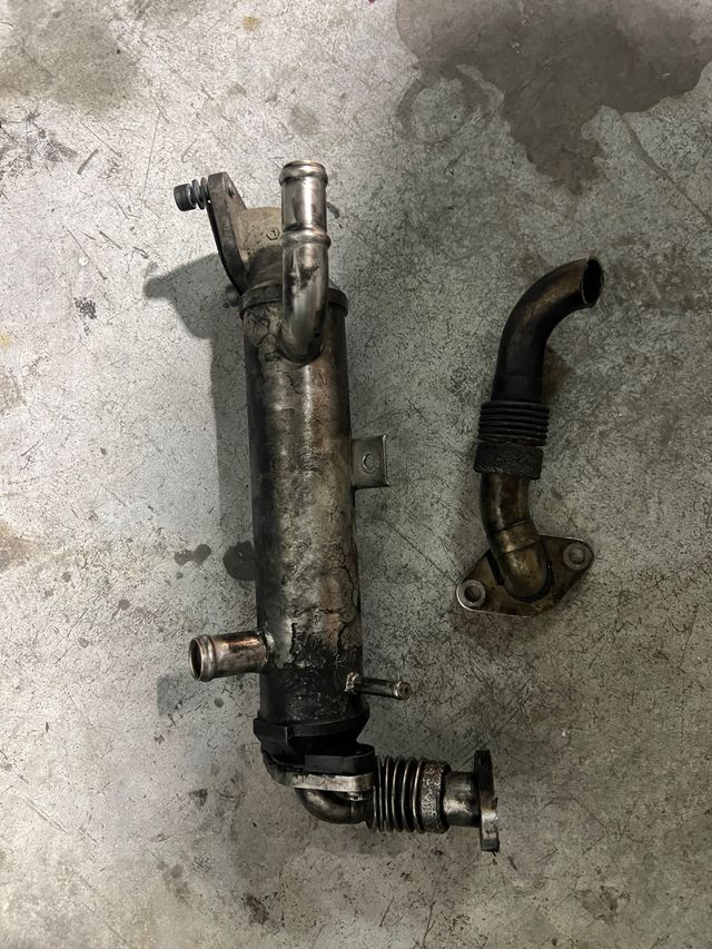 Detalles del productoEnfriador de gases de escape (EGR) para motor 1.9 TDI. Se incluye el enfriador principal y un tubo curvo de conexión.