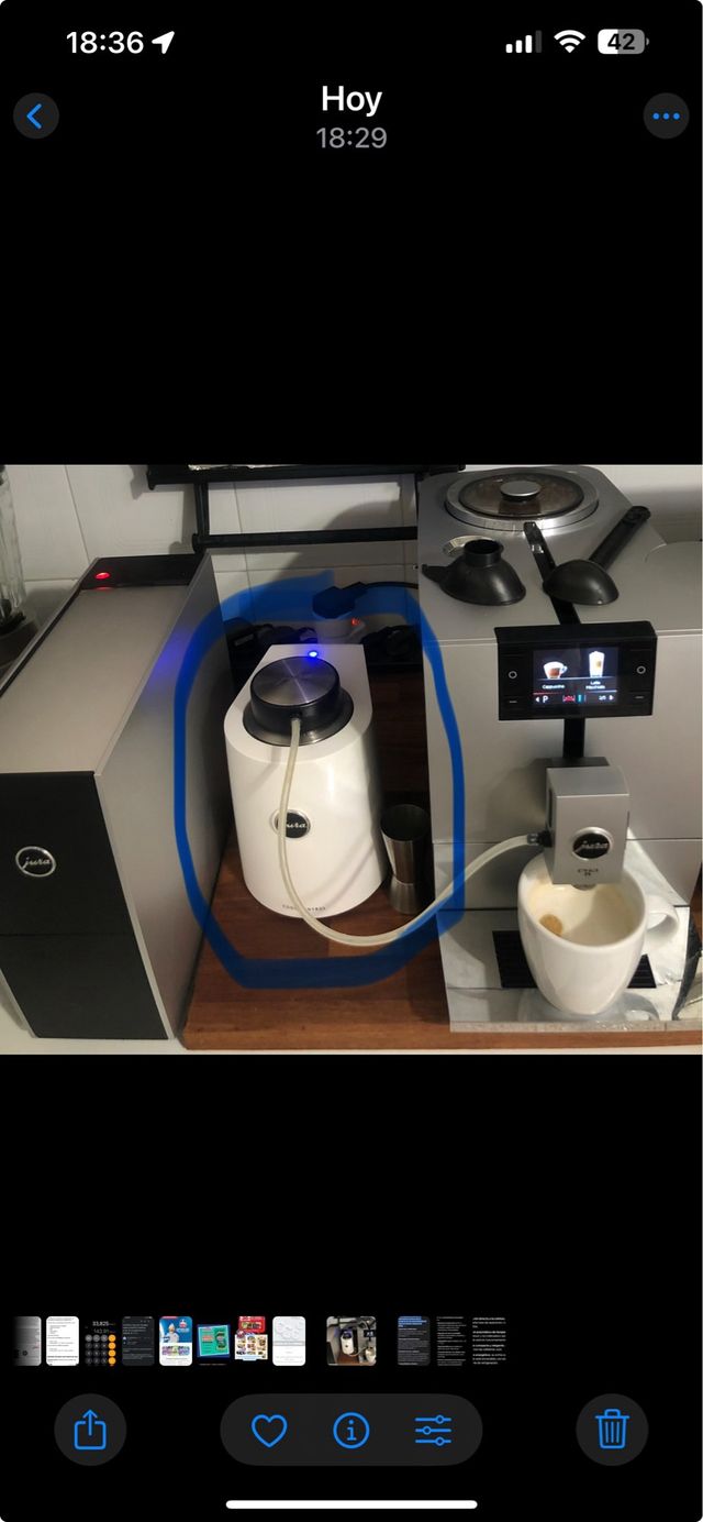 Detalles del productoCafetera Jura con sistema de enfriamiento de leche.