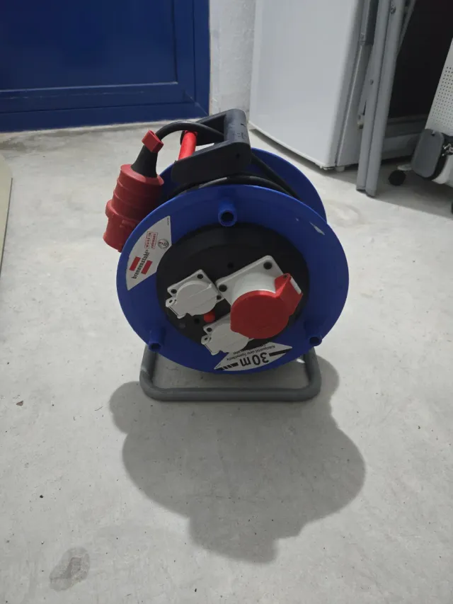 Detalles del productoEnrollacable de 30 metros con conexión trifásica. Ideal para trabajos que requieren mayor potencia.