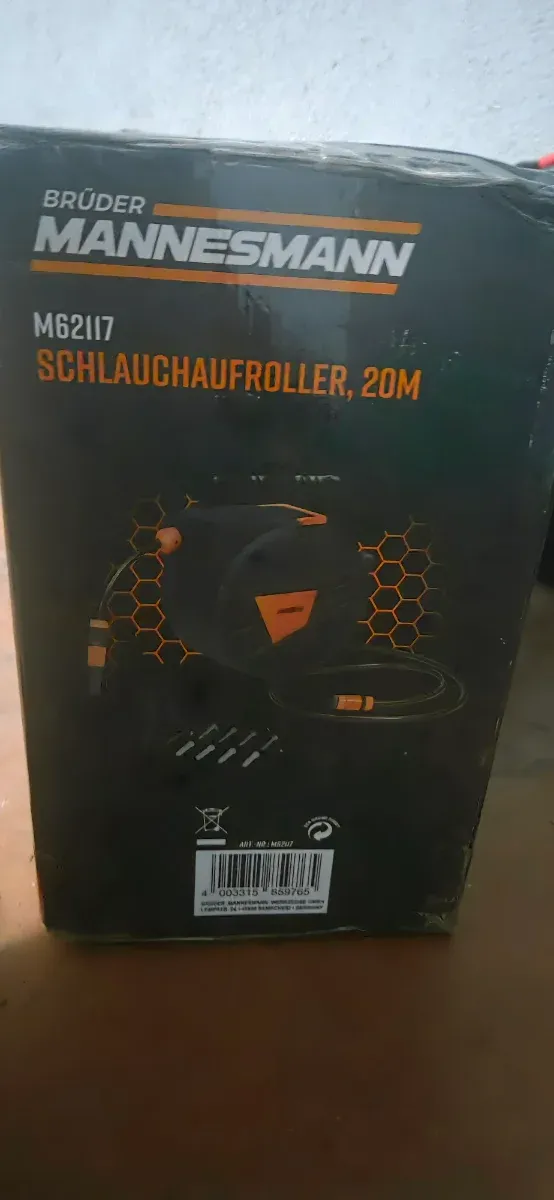 Detalles del productoEnrollador automático de manguera de agua de la marca Bruder Mannesmann.