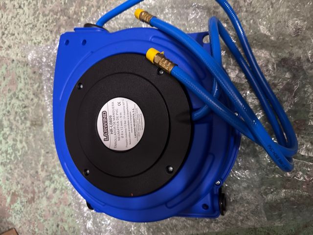 Detalles del productoEnrollador de manguera neumática de PVC de la marca Larwind.
