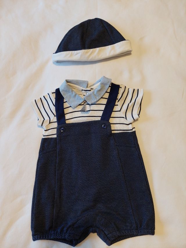 Conjunto enterizo de Mayoral. Con gorrito a juego. Usado pero perfecto. Talla 2 meses, 60 cm
