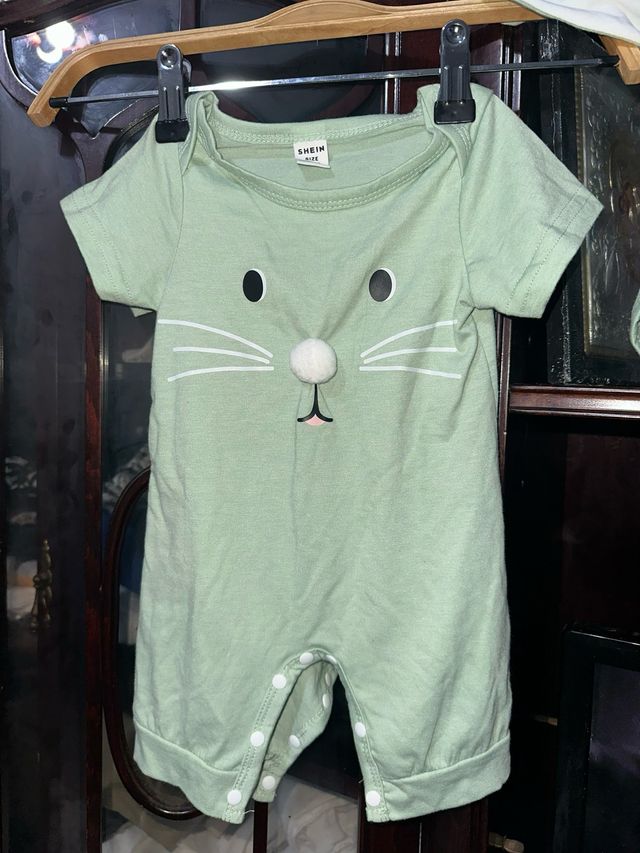 Detalles del productoEnterizo de bebé de manga corta en color verde, con un adorable diseño de conejo.