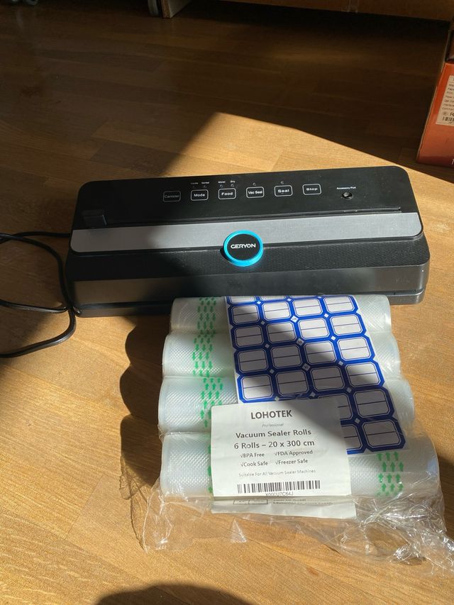 - Incluye 4 rollos de bolsas para envasar al vacío (20 x 300 cm).