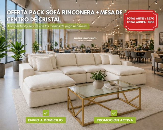 ENVIO GRATIS Sofá beige y mesa centro cristal