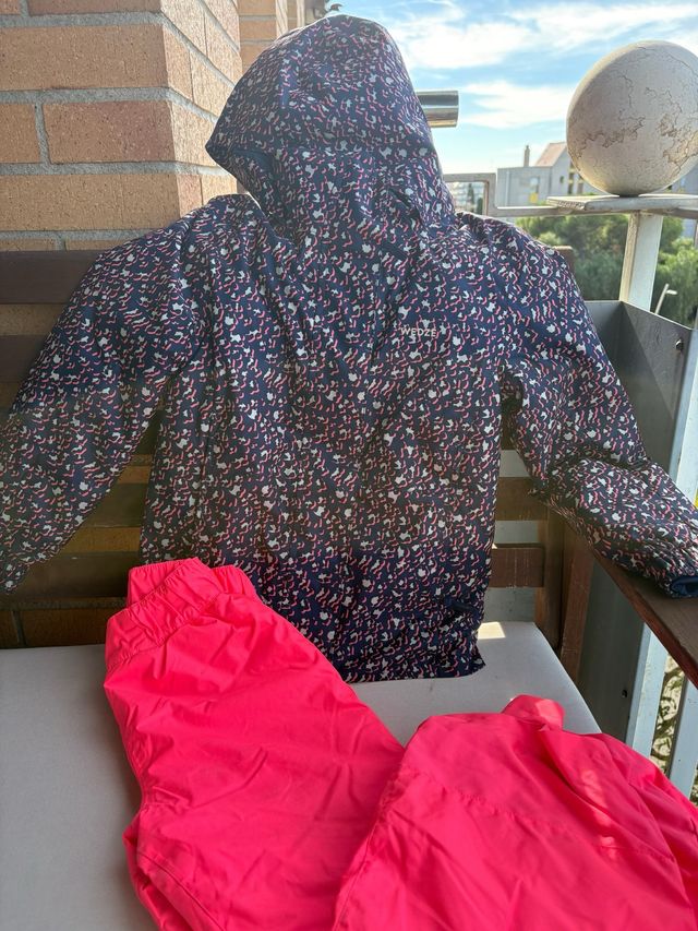 Conjunto de esquí para niña en talla 6. - Chaqueta con estampado - Pantalón de color rosa fucsia