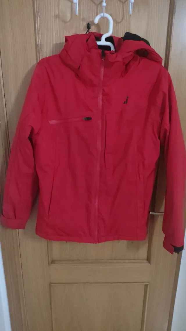 Detalles del productoChaqueta de esquí Joluvi, impecable y costuras termoselladas de color rojo, pantalón esquí con tirantes Decathlon. Gafas con doble cristal para ventisca.