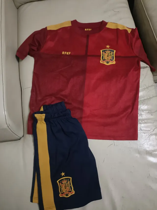 Equipación oficial de la selección española de fútbol. - Talla 12. - Logo RFEF. - Producto oficial licenciado. - Fabricado en España.