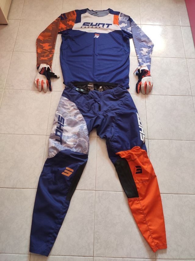 Detalles del productoTraje de moto solo probado osea nuevo, completo con guantes