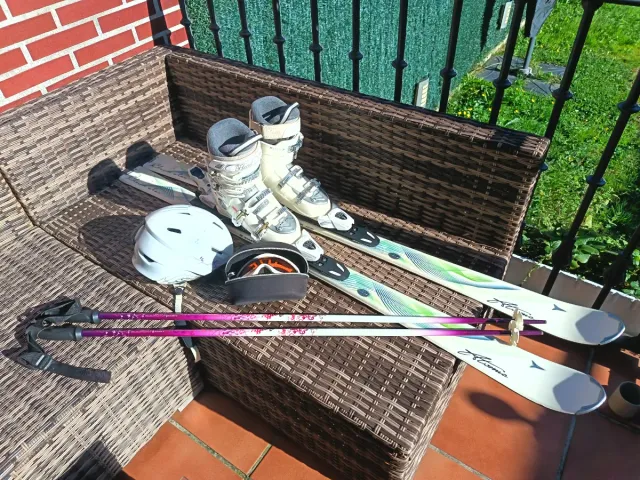 Detalles del productoConjunto completo de esquí listo para la montaña. Todo el conjunto se ha usado 3 días. Están como nuevos. No tienen ningún roce ni desgaste como se puede apreciar. Guardado en sus cajas originales. Talla ideal de uso 150-160 CMS y 39 de pie.