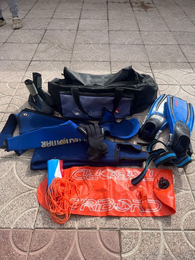Detalles del productoConjunto de equipo de buceo listo para usar.