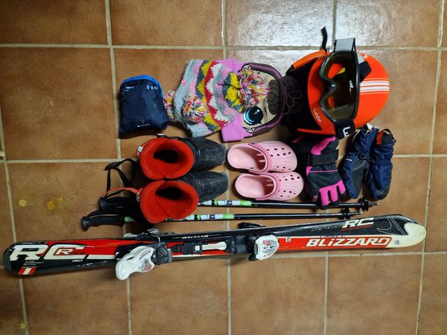Equipo completo, compuesto de esquis Blizzard carving, botas (205 creo), bastones,casco, gafas, guantes, manoplas, chubasquero,2 gorros, sandalias