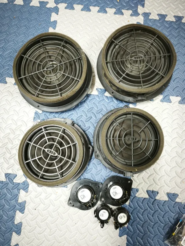 Conjunto de altavoces Audi Sonavox compuesto por 4 principales, 2 del salpicadero y 2 tweeters traseros.
