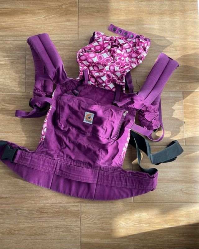 Detalles del productoMochila portabebés Ergobaby de color morado. Está en muy buen estado y lista para usar.