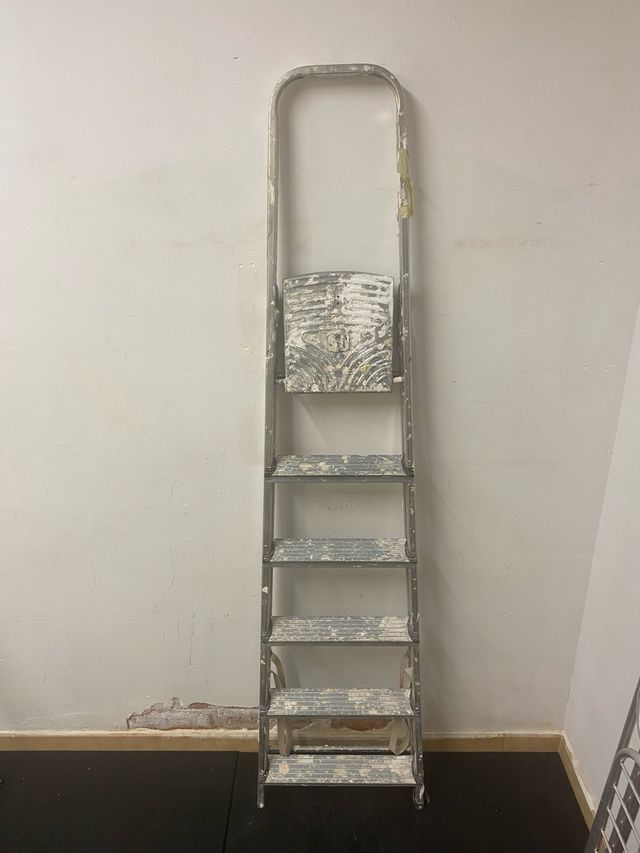 Escala d’alumini. Bona qualitat. Bruta de guix/pintura, però en bones condicions.