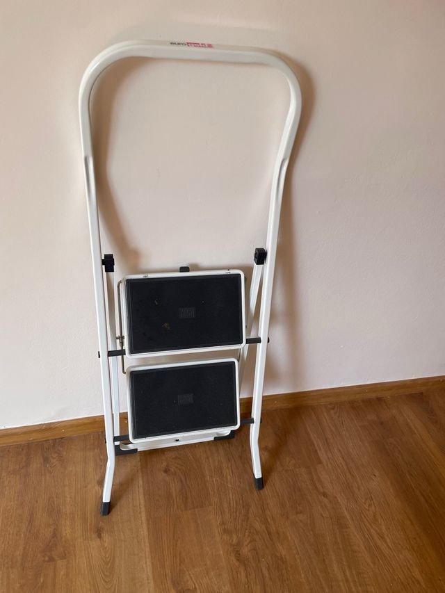 Detalles del productoEscalera de aluminio de dos peldaños, ideal para tareas domésticas. Está en buen estado.