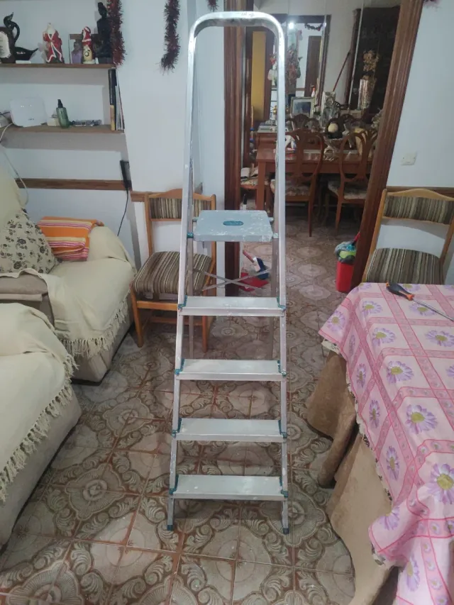 Detalles del productoEscalera de 5 peldaños, ideal para alcanzar lugares altos en casa o en el trabajo.