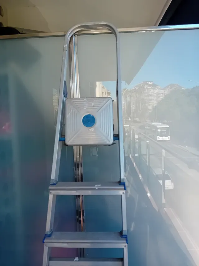 Escalera de aluminio con 5 peldaños y una base adicional. - Fabricada en aluminio resistente. - Diseño práctico y funcional. - Incluye peldaños antideslizantes.