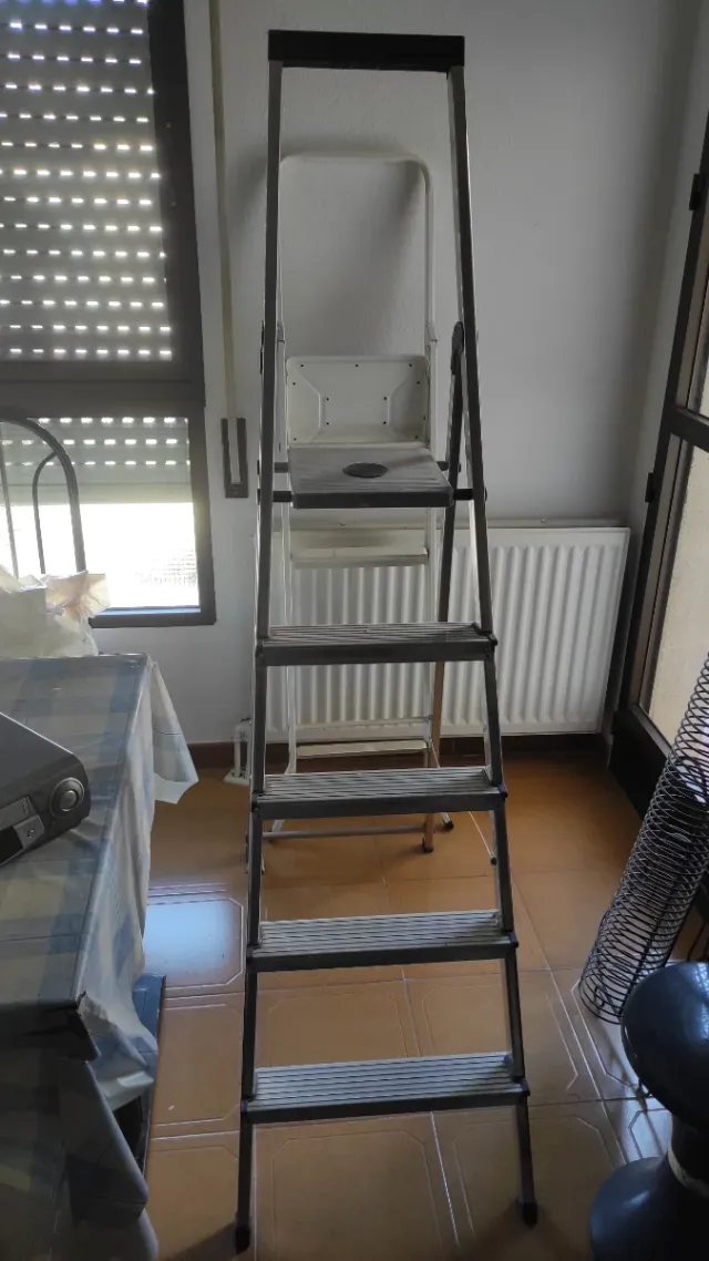 Escalera de aluminio con cinco peldaños. - Material: Aluminio. - Número de peldaños: 5.