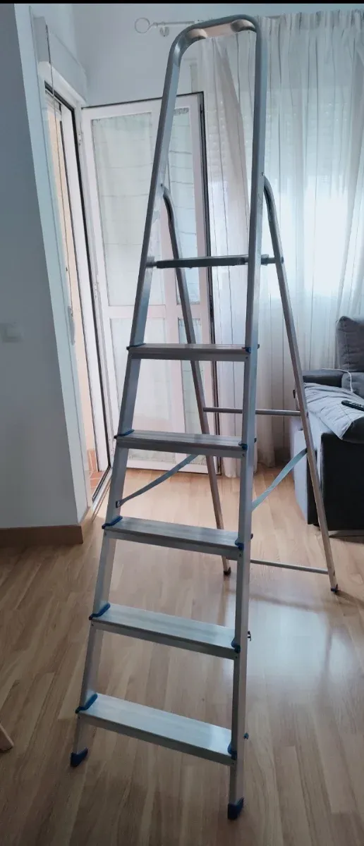 Detalles del productoEscalera de aluminio con seis peldaños.